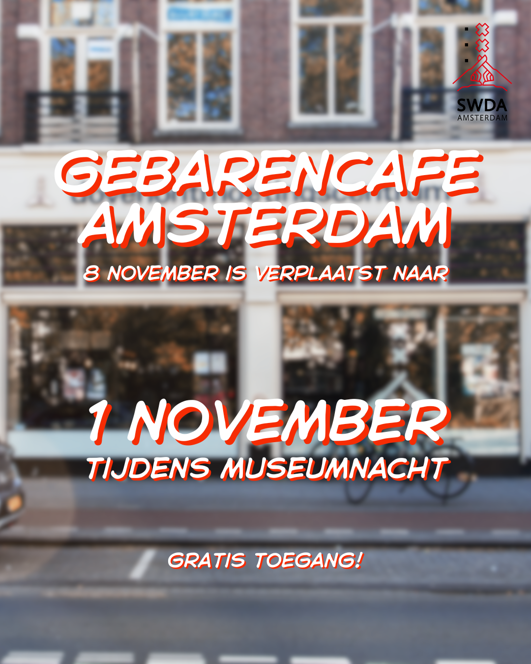 Het Gebarencafé Amsterdam zou normaal gesproken plaatsvinden op zaterdag 8 november, maar is verplaatst naar zaterdag 1 november, tijdens Museumnacht!